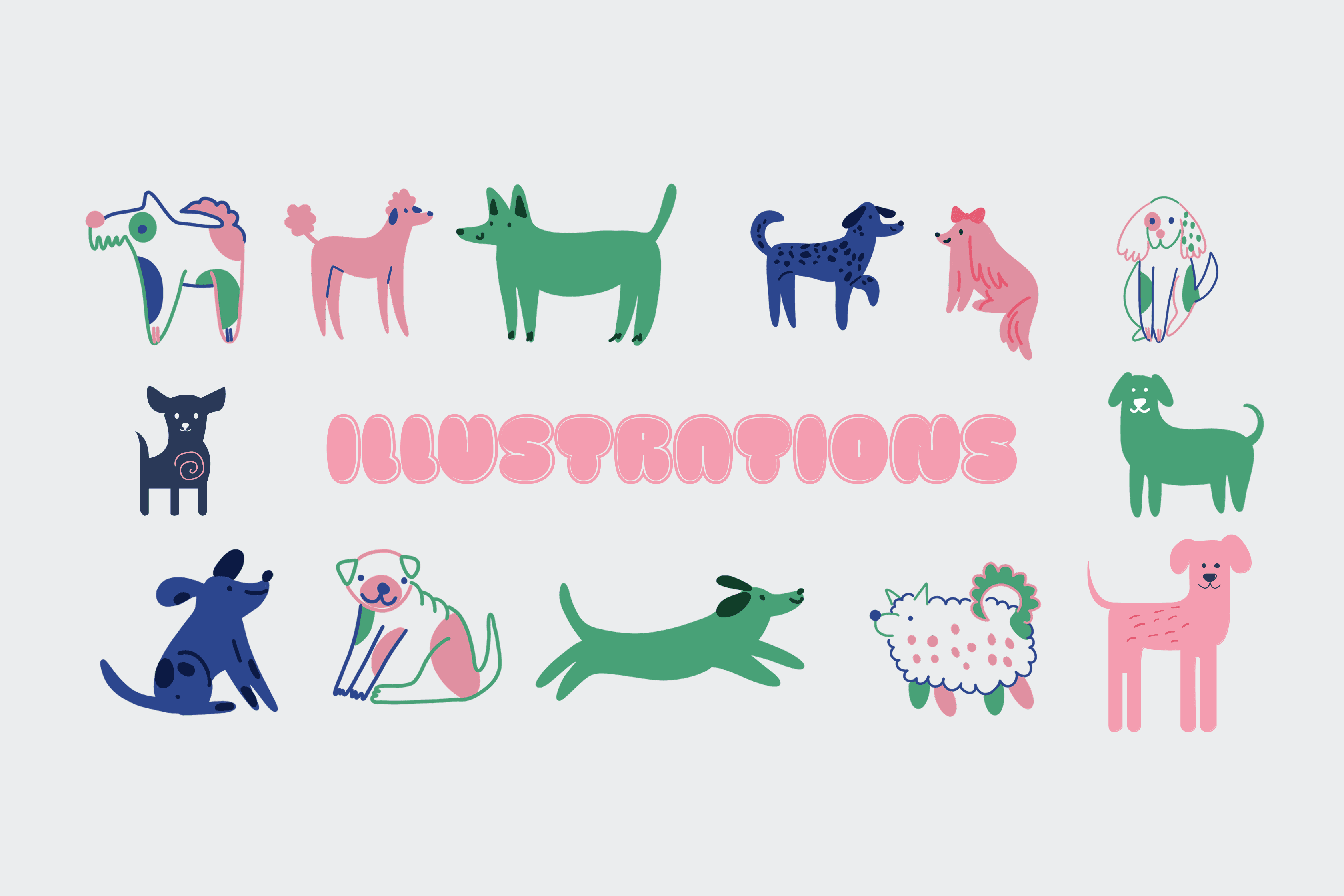 This project involved creating a playful and colorful branding system for a natural dog food brand. The packaging is designed to appeal to pet owners while clearly communicating the type of product: each pack features cheerful illustrations of dogs and visual cues to indicate the formula.