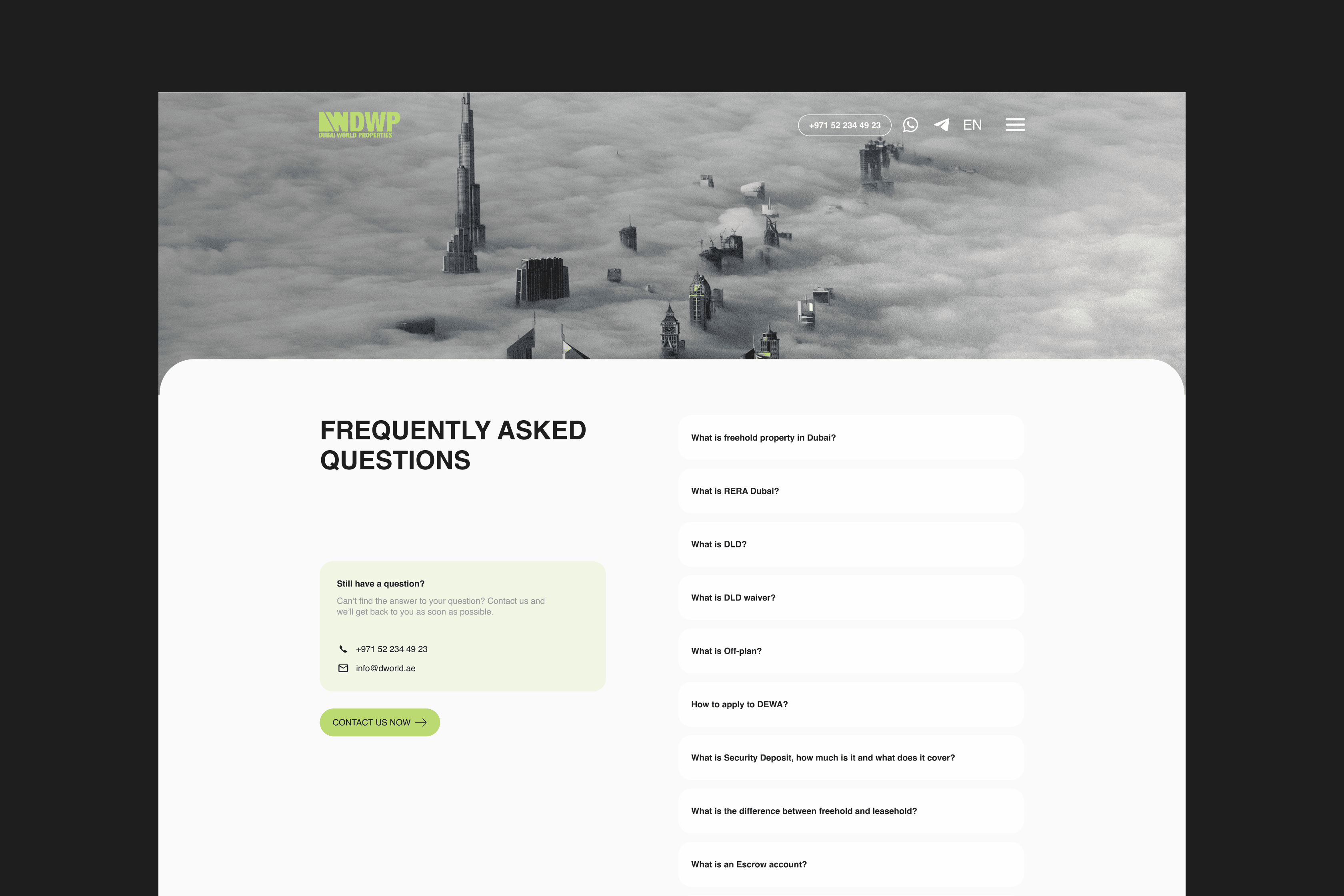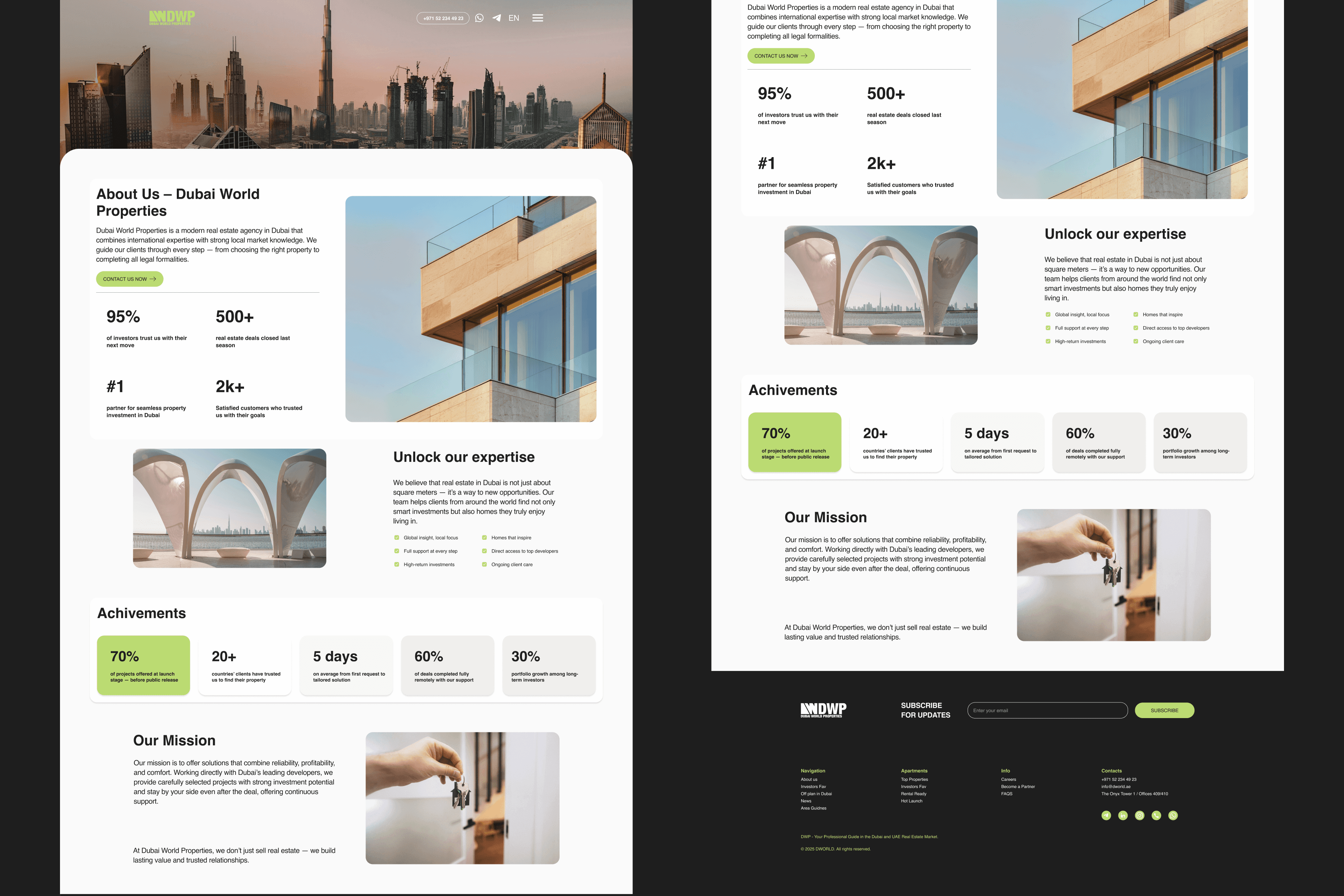 This project was created for a real estate agency in Dubai. My task was to develop fresh, modern branding and website design that is both user-friendly and reflects the company’s reliability and professional approach.